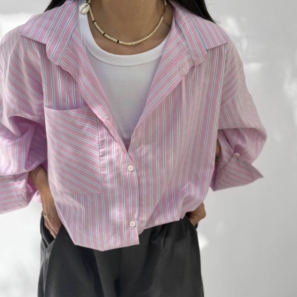 شومیز راه راه صورتی(خط آبی)