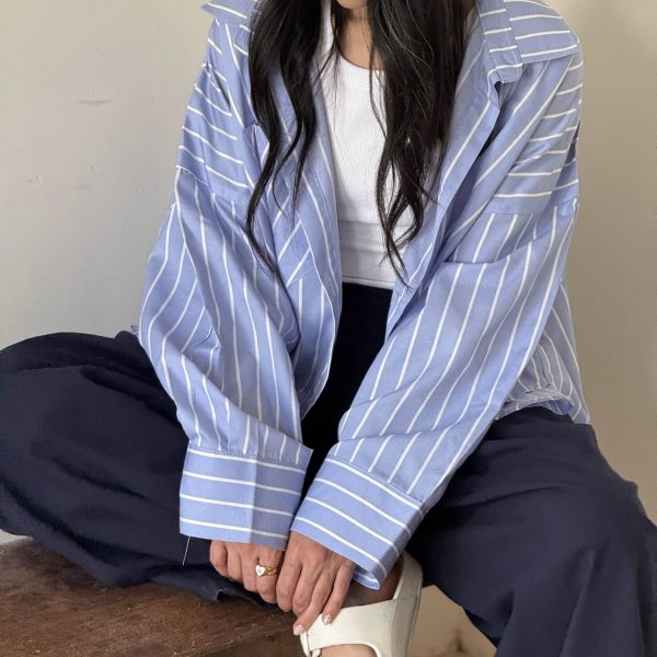 شومیز راه راه ابی اسمونی کد ۱۱۲