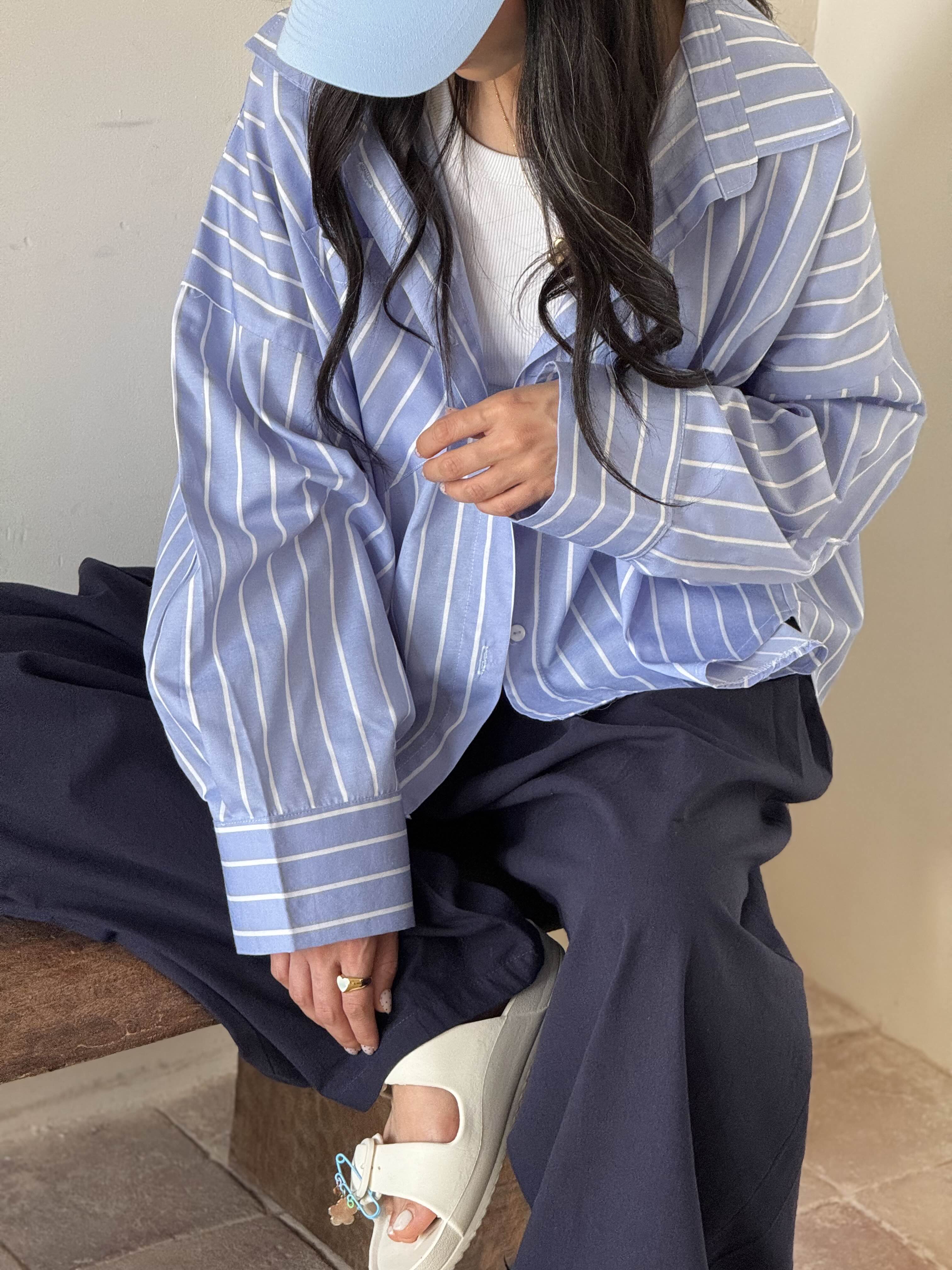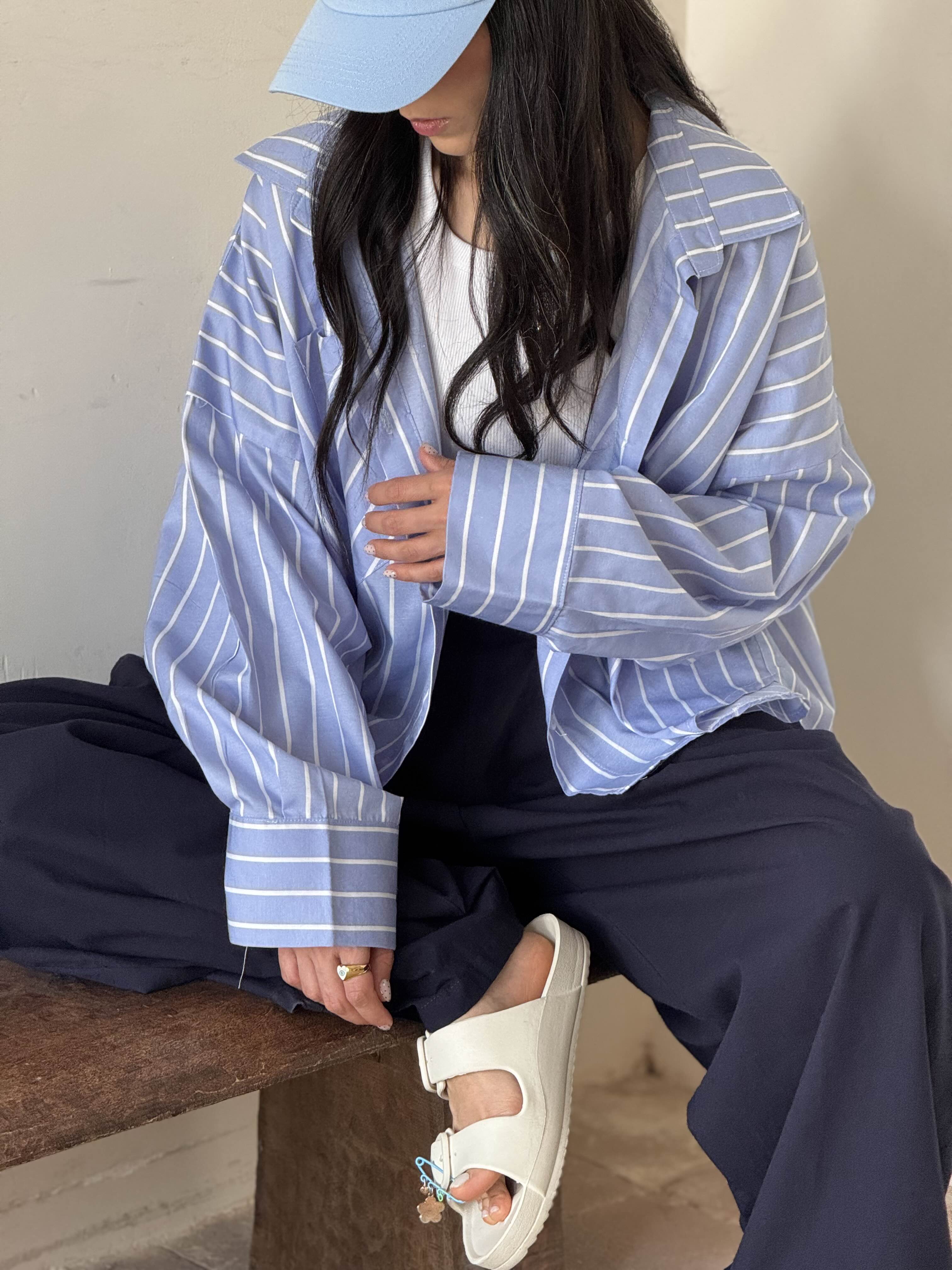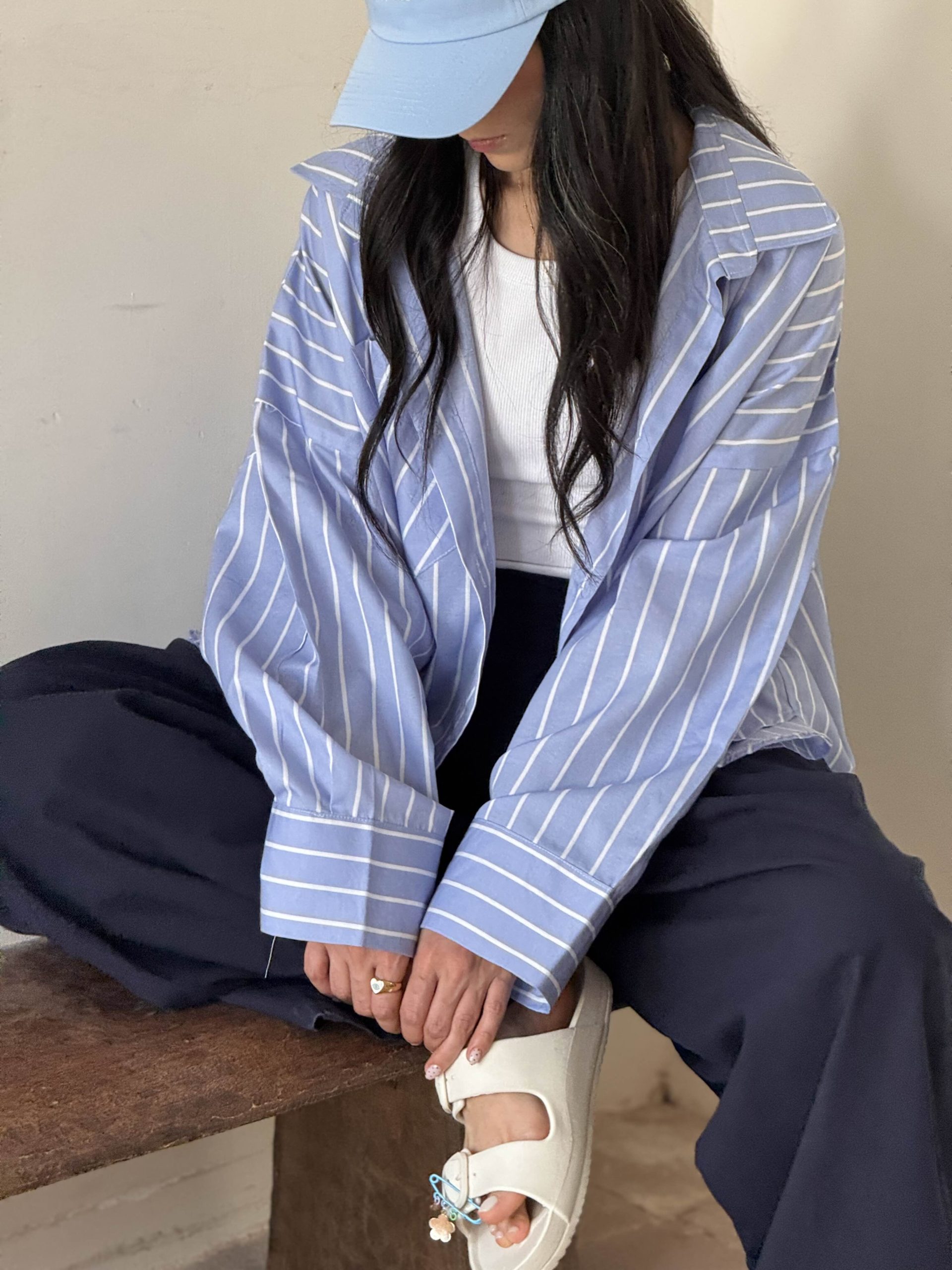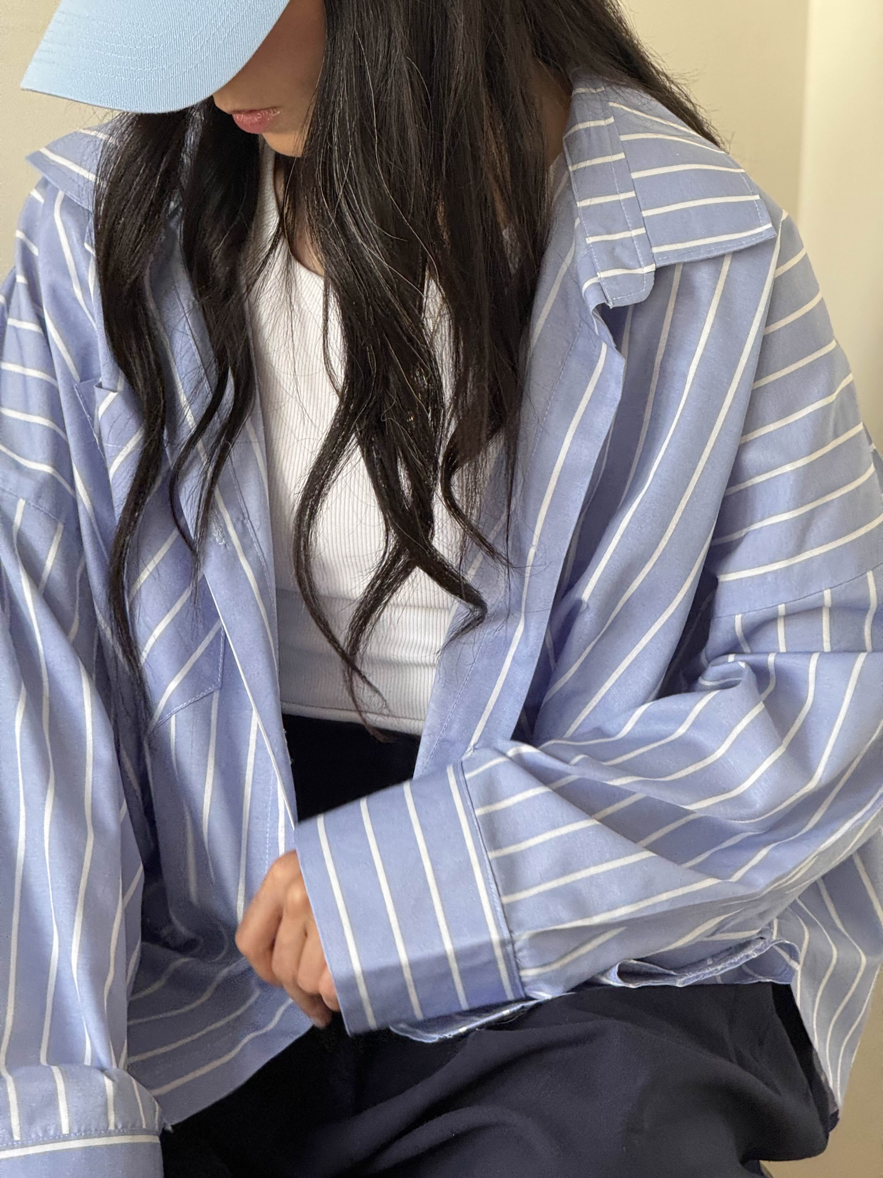 شومیز راه راه ابی اسمونی کد ۱۱۲