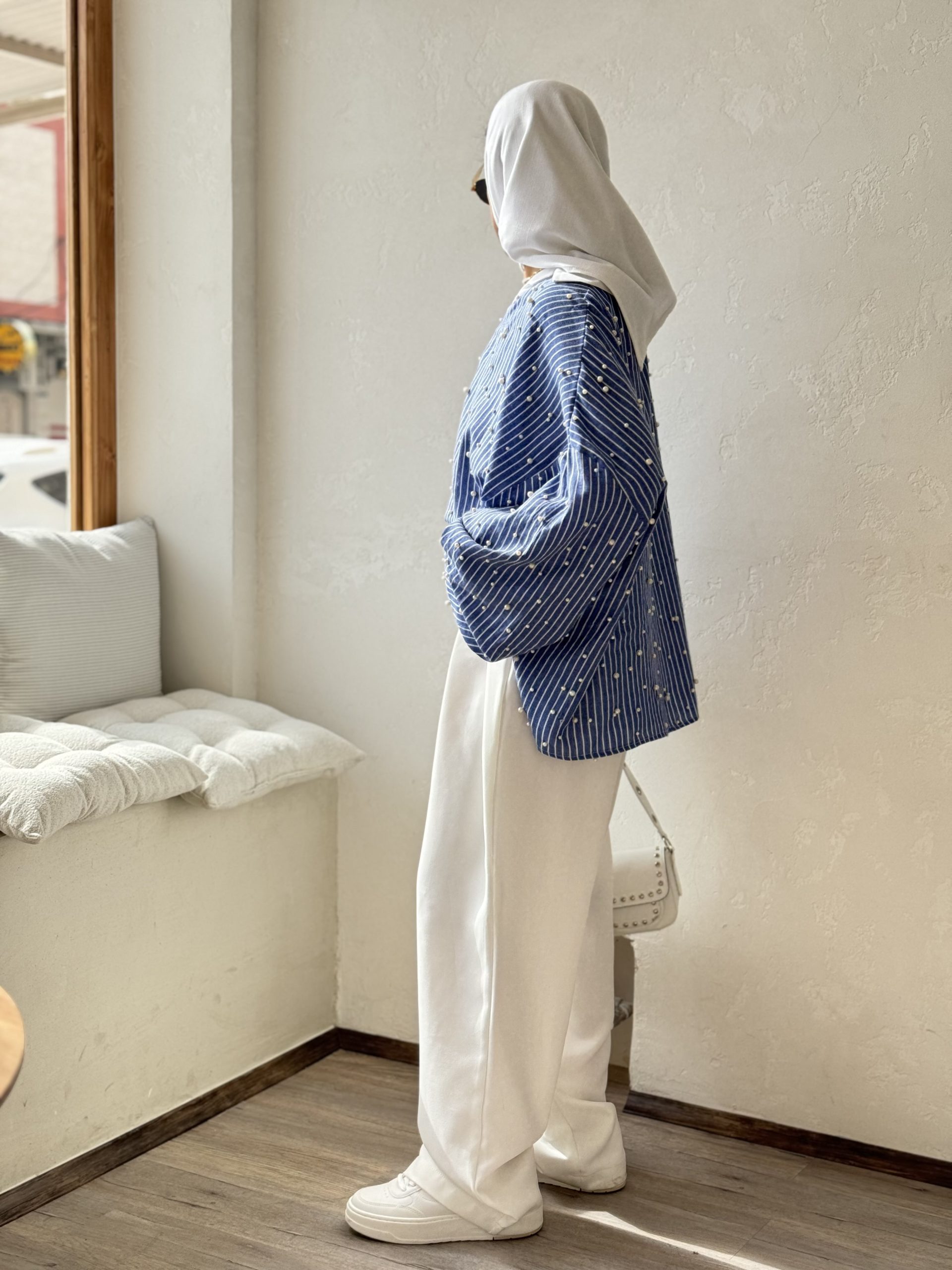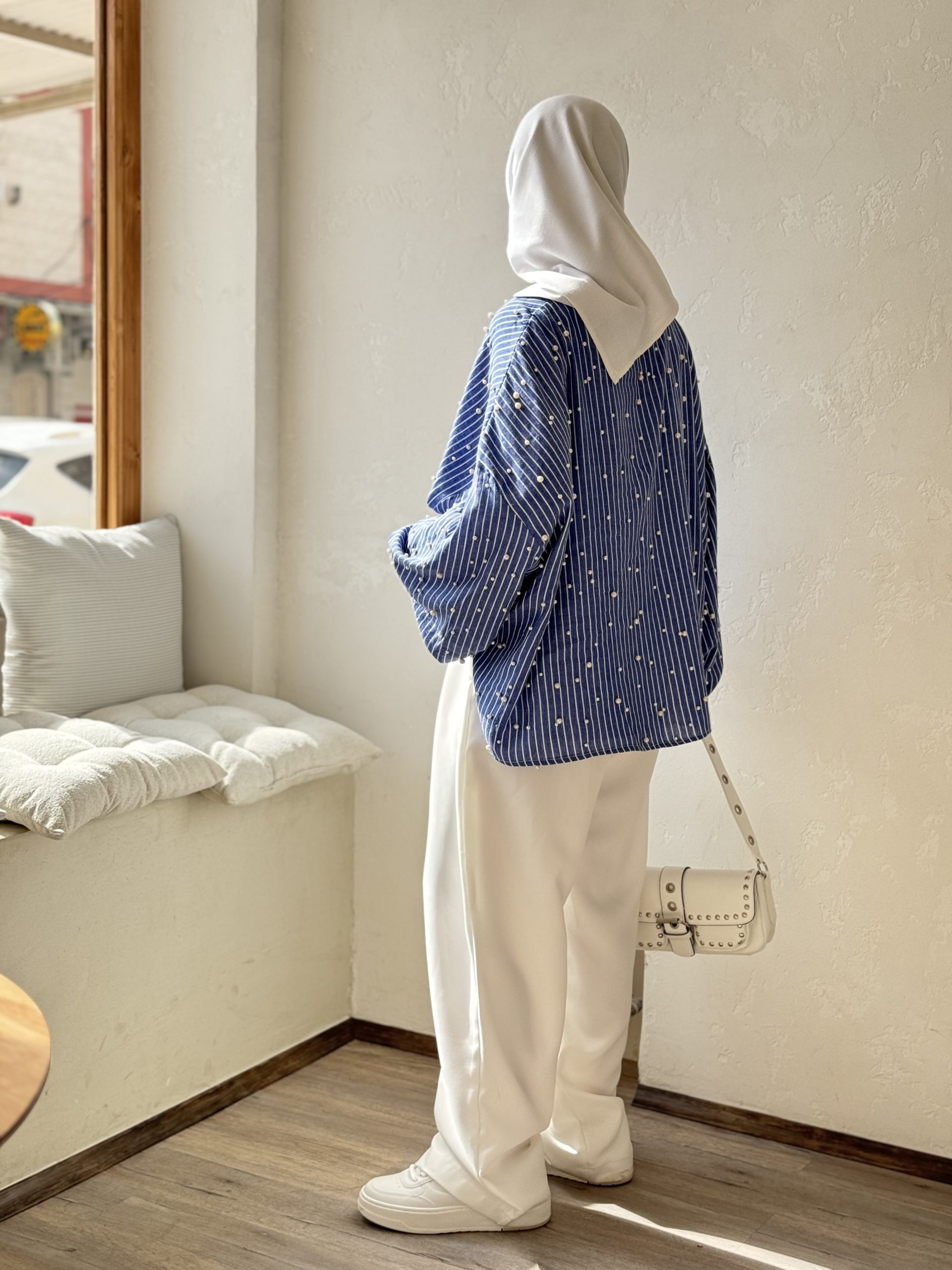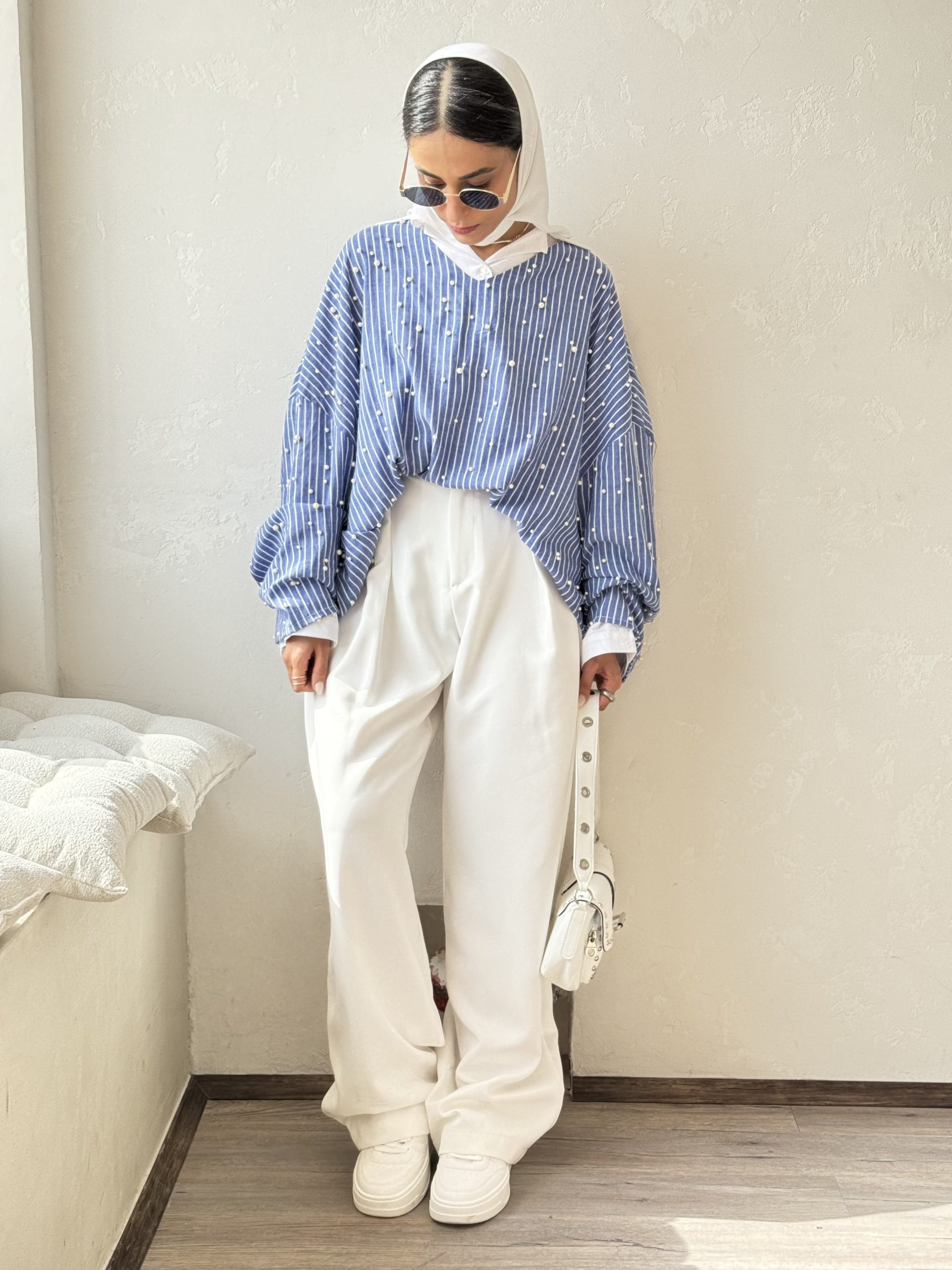 شومیز راه راه مرواریدی