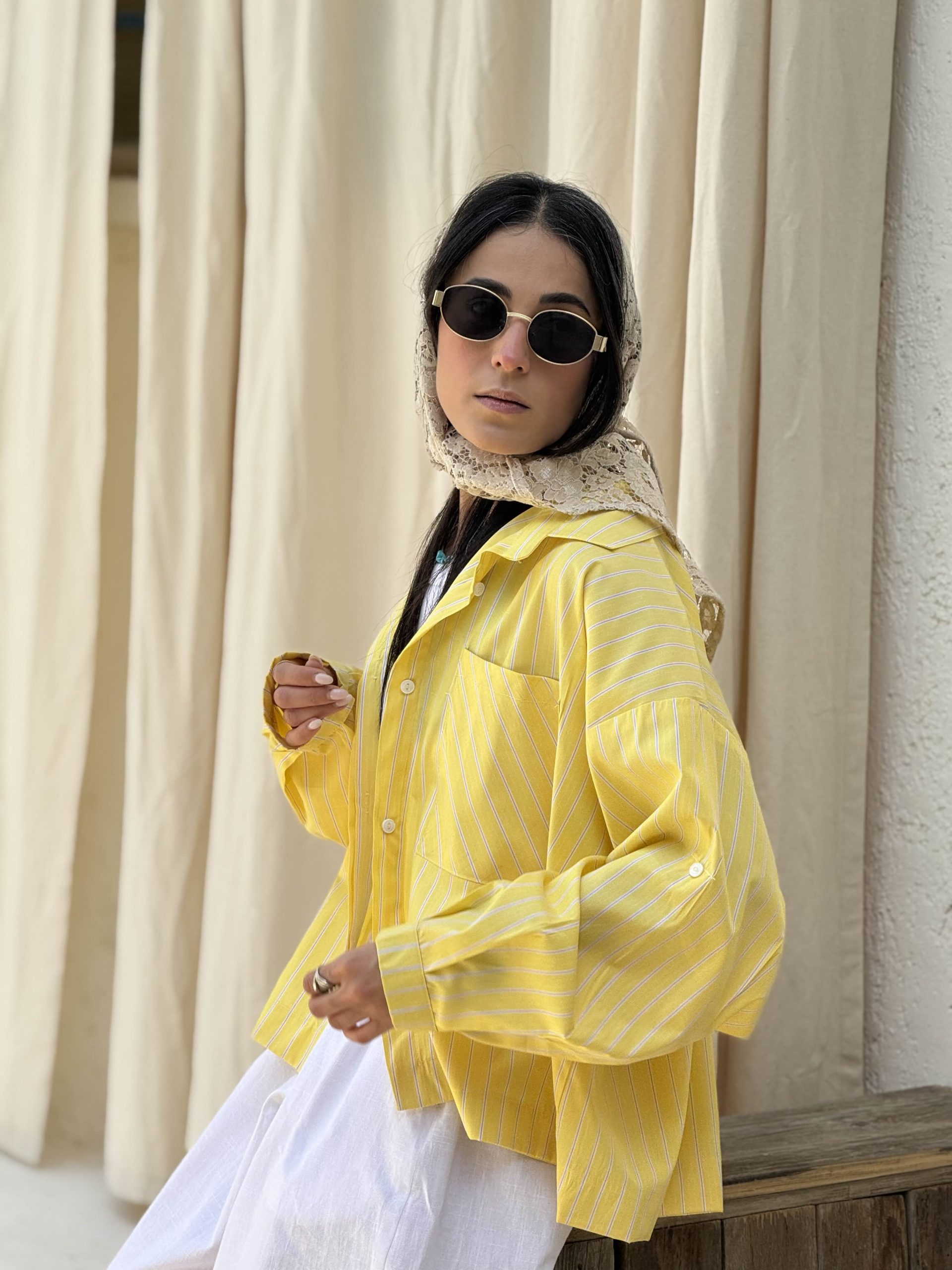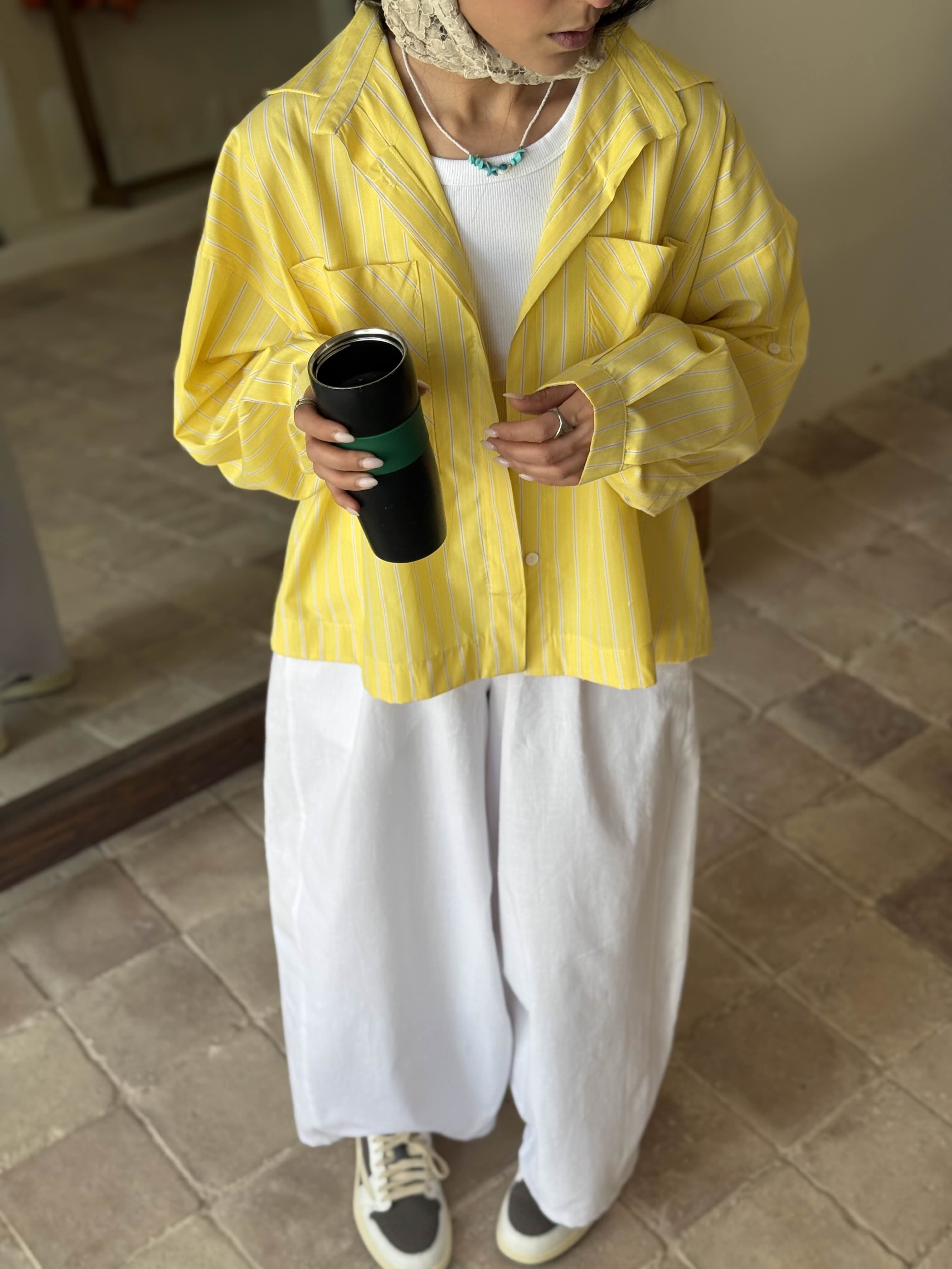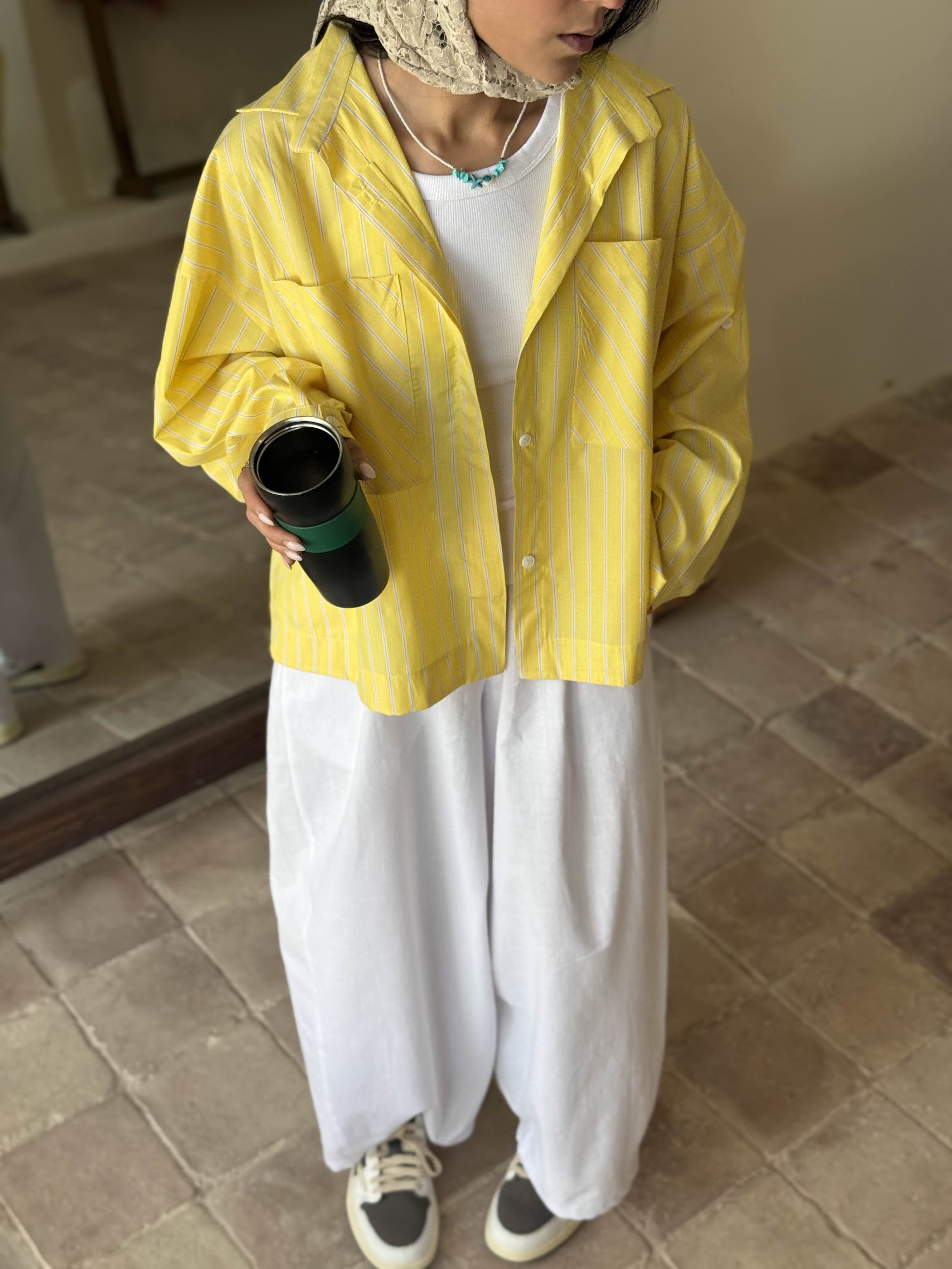 شومیز راه راه زرد-آبی